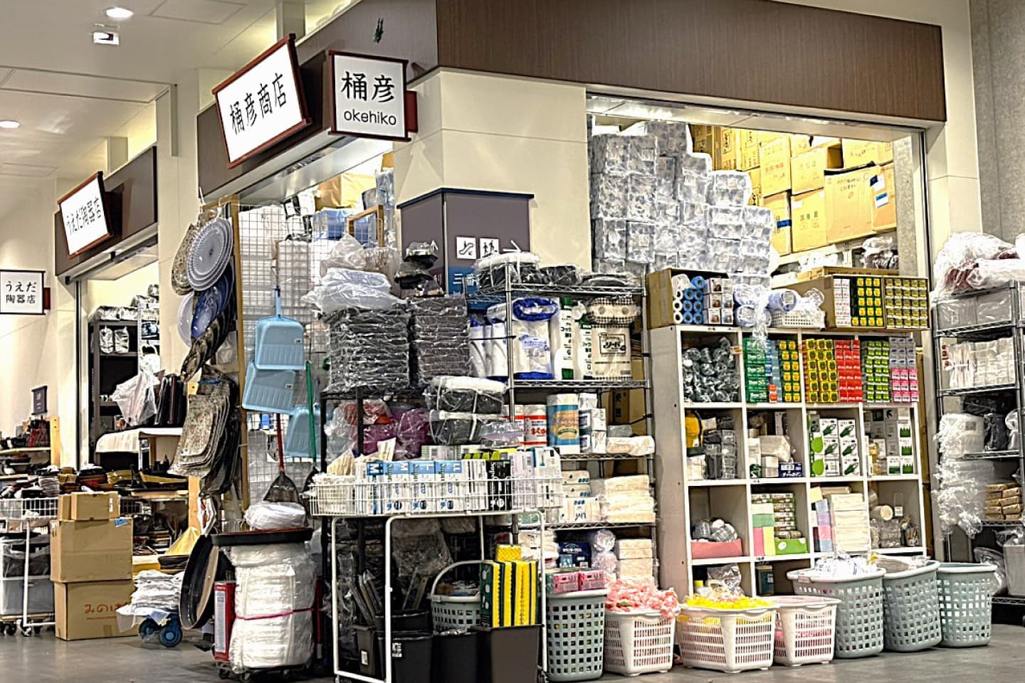 桶彦商店は、豊洲市場の魚がし横丁内にて、食を包む梱包材や、